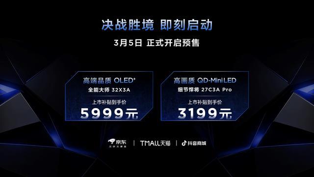 通往“胜境”的大门一经开启。“万能至臻”32X3A上市首发价5999元,“细节悍将”27C3A Pro上市首发价3199元,即日起在TCL官方商城及各大相助平台开启预售。本次发布不啻于三款旗舰居品,而是一个完整的系列居品。除了当作标杆的X3A、C3A Pro和P2A Ultra,每个系列旗下王人提供不同尺寸、不同规格建立的版块,岂论需求选拔何如、桌面空间多大、功能侧重有何不同,王人能在TCL自大器中找到最符合的那一款。