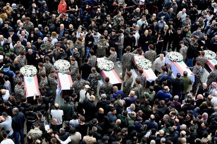4月11日,在黎巴嫩西顿市,东说念主们插足遭以军空袭丧生的13名安全东说念主员的葬礼。新华社发(阿里·哈希绍 摄)